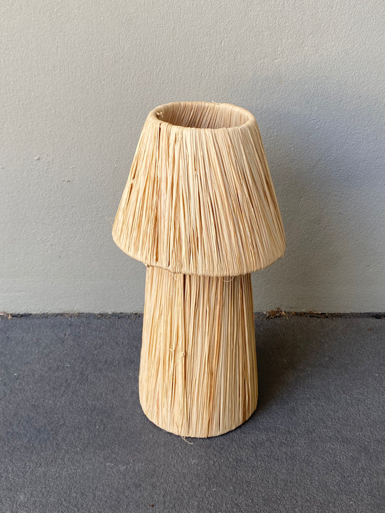Our stunning Raffia lamps are handmade by our Artisan partners in Morocco. The frame is constructed from metal with a woven raffia finish.